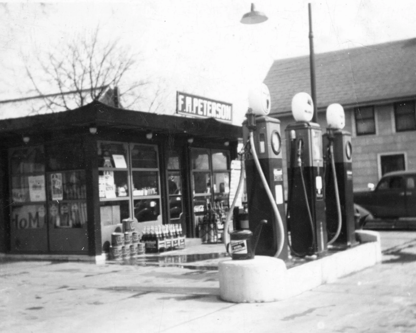 Peterson’s Mobil Service Station started in the late 1920’s. They remained in business until the early 2000’s, staying in the Peterson family for the better half of a century. I was fortunate enough to acquire original photographs from the last owner, Chuck Peterson. With each photograph, he gave me history lessons and stories that I will cherish and share for many years to come.